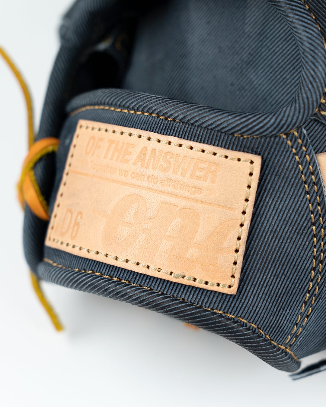 デニム調レザー特有の織りとツヤが、角度や光で微妙に表情を変える。