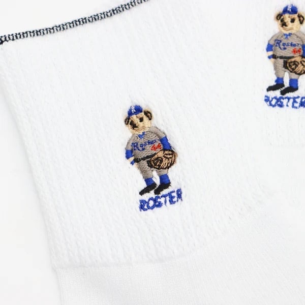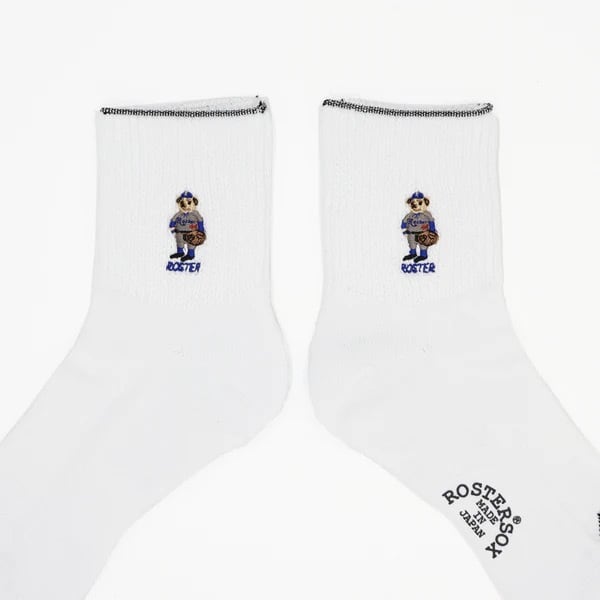 ユニフォームを纏ったベアが刺繍で施された、ショートリブソックスです。